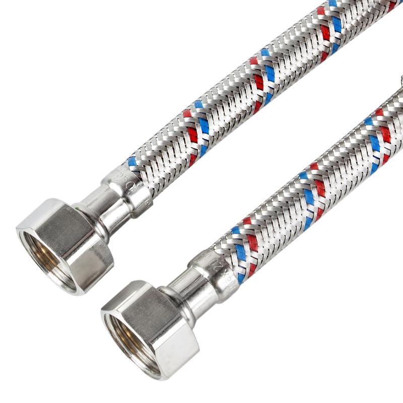 Гибкая подводка для воды в оплетке с ПВХ покрытием препятствует образования конденсата Присоединение: 1/2" внутренняя - 1/2" внутренняя, Длина: 60см