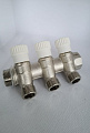 Коллектор с вентилями 135° никелированный под плоскую прокладку. 3/4*1/2 (3 выхода) MR135N-03-3F