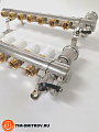 Коллекторная группа TIM для систем отопления, 1" * 3/4" евроконус на 7 контуров, латунный корпус, без расходомеров, в комплекте: воздухоотводчики, дренажные краны, термометры, арт.: KB007