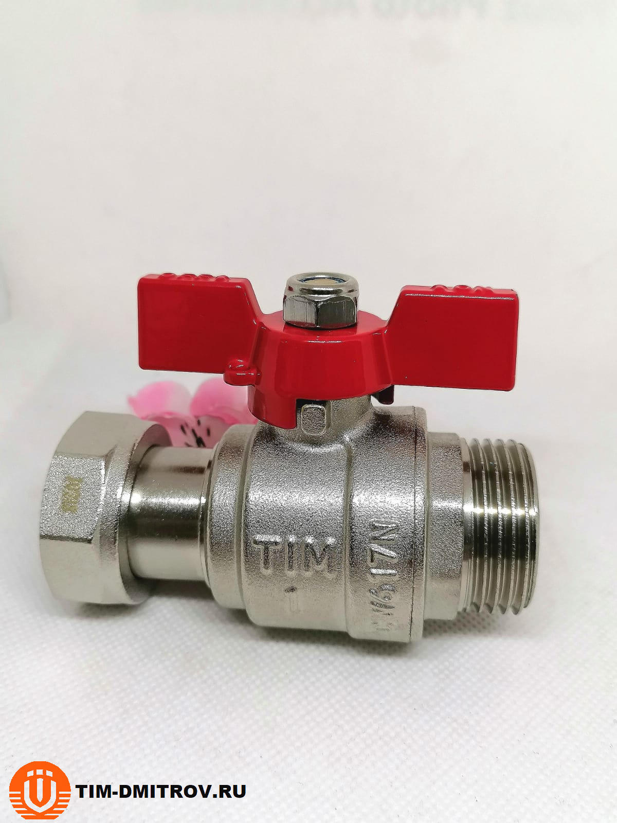 Кран шаровой прямой с накидной гайкой и наружной резьбой. Шаровой кран TIM — является полнопроходным усиленным, который находит применение в виде запорной арматуры в разных системах трубопровода, начиная от холодного (в том числе питьевого) и горячего водоснабжения, а так же отопления, сжатого воздуха, бензо- и масло- проводах. Называется усиленным так как может быть установлен при повышенных давлениях и температурах. Корпус крана защищен слоем никеля.