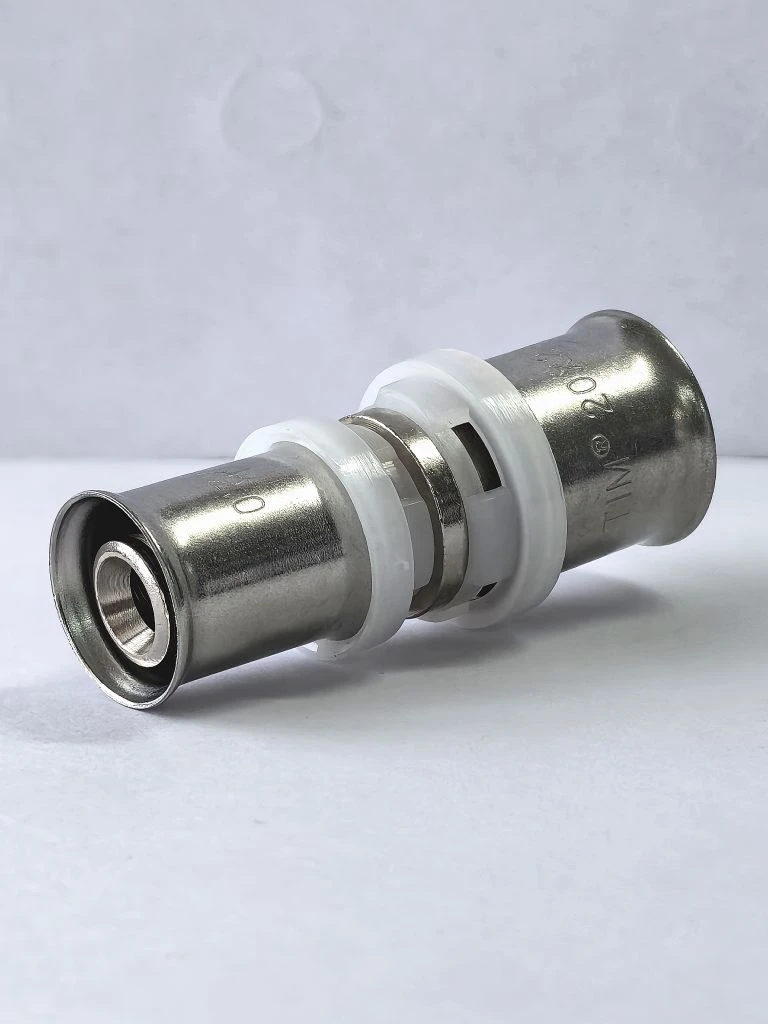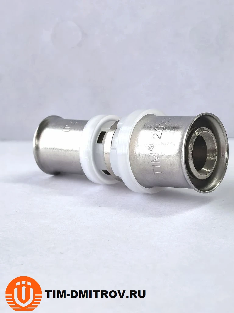 Пресс-фитинг муфта переходная никелированная 20x16 мм (арт. F-S2016N)Описание: Надежная переходная муфта из никелированной латуни предназначена для соединения труб из сшитого полиэтилена (PEX) или металлопласта с разными диаметрами (20 мм и 16 мм). Пресс-фитинг обеспечивает высокую прочность соединения, устойчивость к коррозии и долговечность. Никелированное покрытие придает эстетичный внешний вид и защищает от механических повреждений. Идеальное решение для систем водоснабжения и отопления.