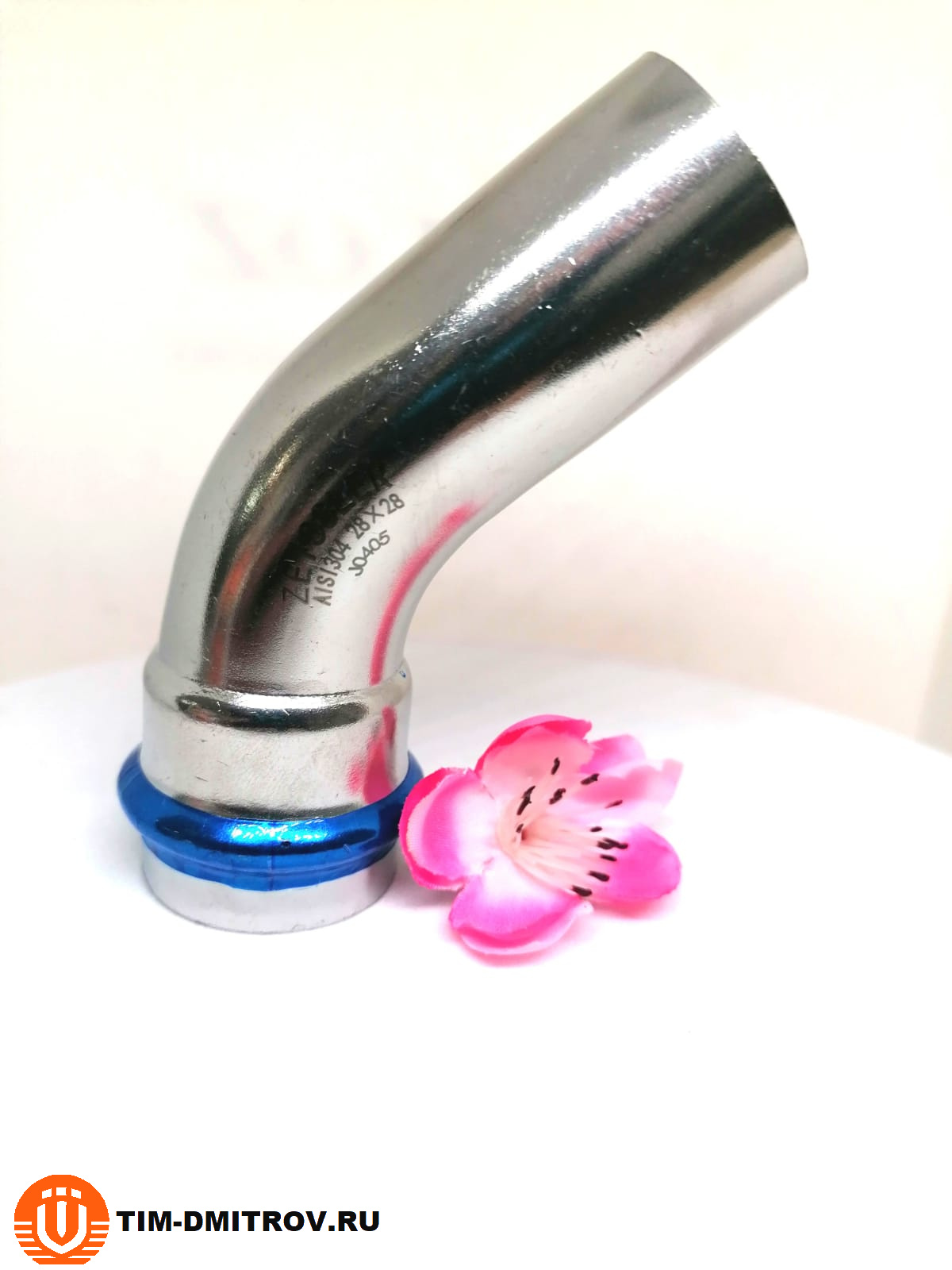 Однораструбный пресс-угольник 45° из нержавеющей стали 28*28 ZTI.558.002828 | TIM Инженерная сантехника