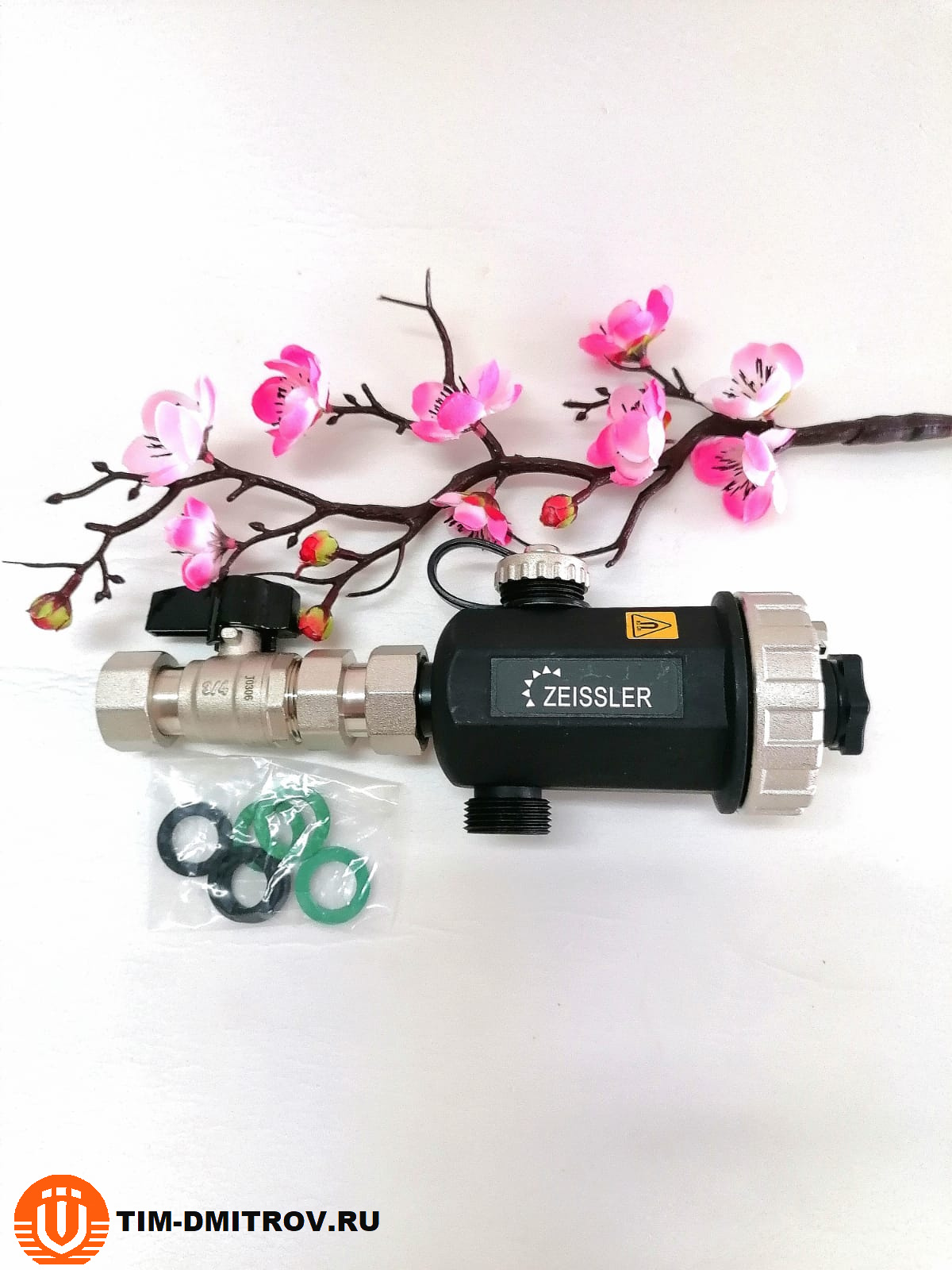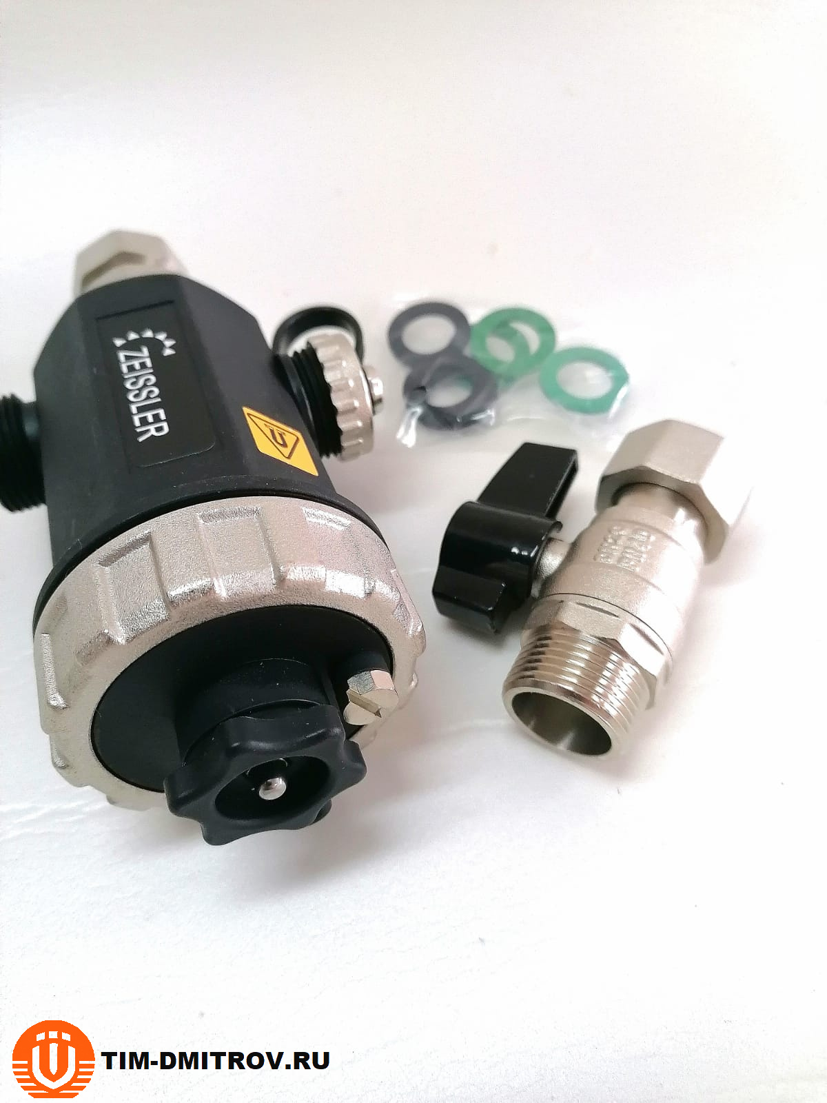 - Шаровый кран: латунь (черный)/ хромированная латунь (белый);