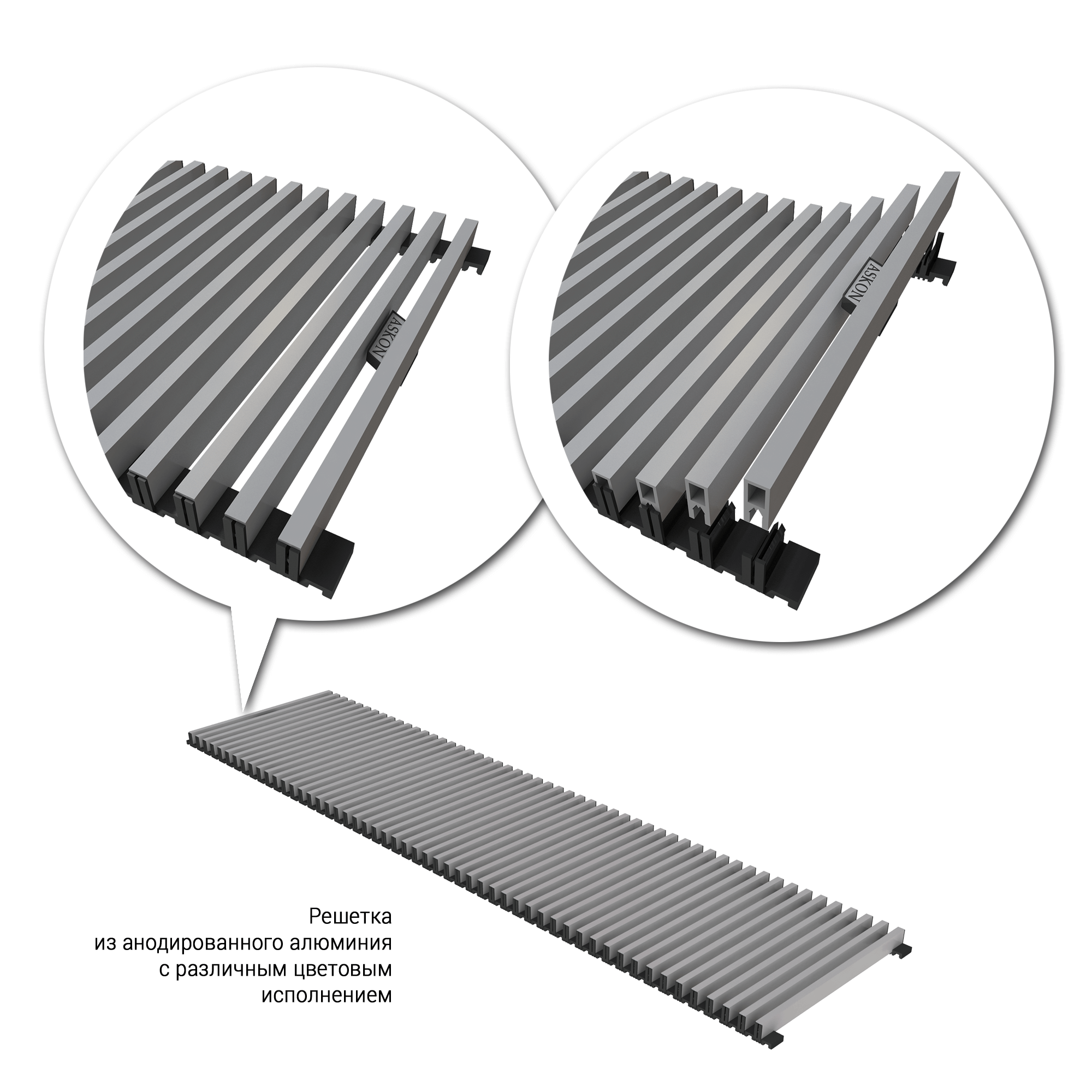 Конвектор Askon - это внутрипольный конвектор от компании АСКОН. Отличное решение для эффективного и быстрого обогрева помещения. С их помощью в помещении создается тепловой барьер, противостоящий холодным потокам воздуха от стеклянных стен и больших окон. Прекрасно встраиваются в структуру пола, оставаясь невидимыми невооруженному взгляду. Могут применяться для холодного кондиционирования. Конвекторы АСКОН рекомендуются для отопления жилых и нежилых помещений (с высокими окнами, витражами, террассами или стеклянными фасадами, в помещениях с бассейном, где традиционные отопительные приборы применить затруднительно). Конвекторы можно использовать в качестве самостоятельного или дополнительного источника тепла. Преимущества внутрипольных конвекторов ASKON: экономия энергии и высокая динамика отопления; повышенная теплоотдача и экологичность – корпус и декоративная решетка из алюминия; надежность – теплообменник из алюминиевого листа толщиной 0,5 мм; долговечность – труба теплообменника изготовлена из меди, D15 мм, толщина стенки 1мм.