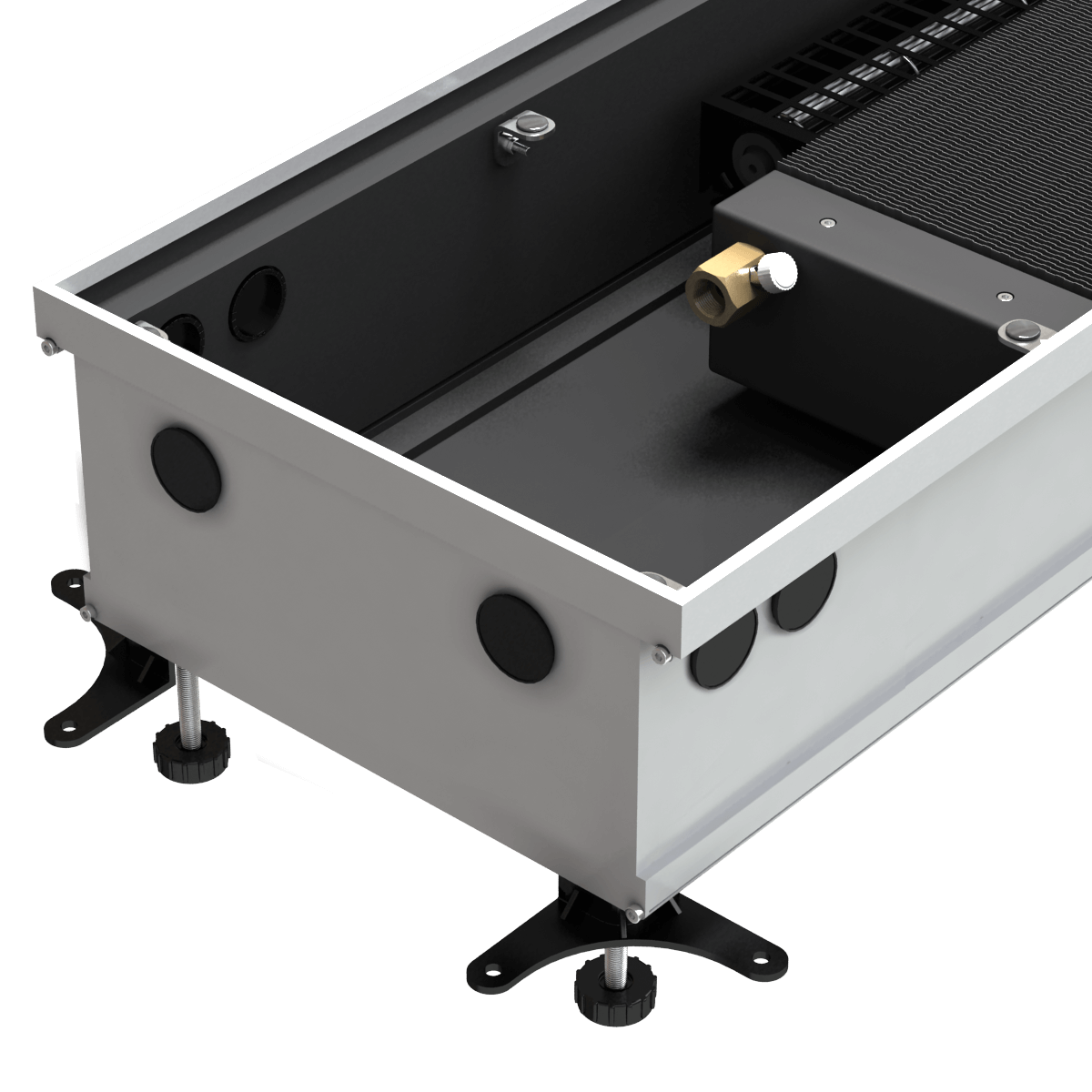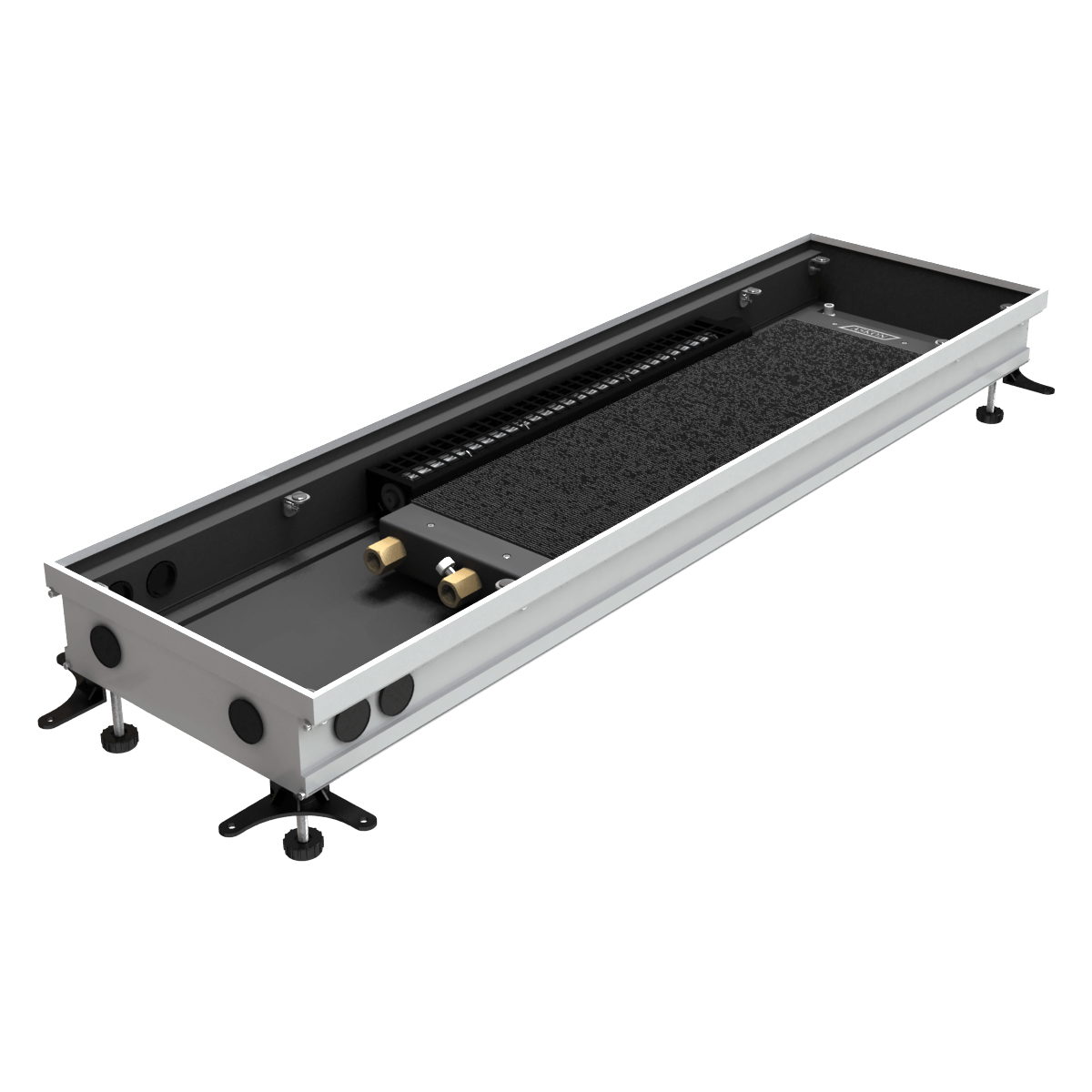 Конвектор RUB 150/400/700 - это внутрипольный конвектор от компании АСКОН. Отличное решение для эффективного и быстрого обогрева помещения. С их помощью в помещении создается тепловой барьер, противостоящий холодным потокам воздуха от стеклянных стен и больших окон. Прекрасно встраиваются в структуру пола, оставаясь невидимыми невооруженному взгляду. Могут применяться для холодного кондиционирования. Конвекторы АСКОН рекомендуются для отопления жилых и нежилых помещений (с высокими окнами, витражами, террассами или стеклянными фасадами, в помещениях с бассейном, где традиционные отопительные приборы применить затруднительно). Конвекторы можно использовать в качестве самостоятельного или дополнительного источника тепла. Преимущества внутрипольных конвекторов ASKON: экономия энергии и высокая динамика отопления; повышенная теплоотдача и экологичность – корпус и декоративная решетка из алюминия; надежность – теплообменник из алюминиевого листа толщиной 0,5 мм; долговечность – труба теплообменника изготовлена из меди, D15 мм, толщина стенки 1мм.